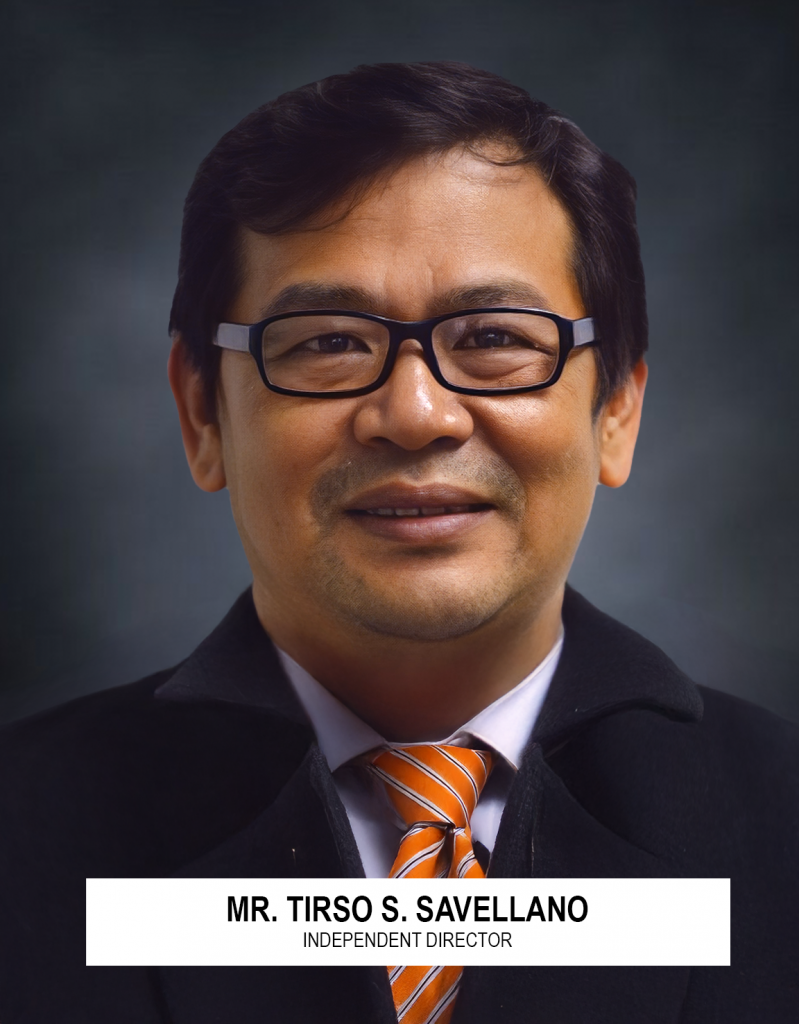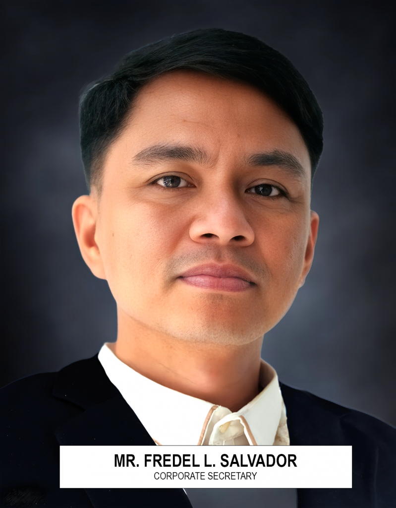 Roselle G. Teodosio Vice PresidentReynaldo V. Villanueva VP for Corporate AffairsFredel L. Salvador Corporate SecretaryNonito M. Labis TreasurerShirley S. Laurente DirectorJose Redmond S. Roquios DirectorFrancisca D. Obispo DirectorMelchor S. Licoben DirectorOctavious M. Mendoza DirectorElizabeth D. Urbano DirectorRosie M. Alamillo IndependentTirso S. Savellano IndependentJose Raul A. Saniel PresidentIglorio R. Hinayon Chief Executive Officer